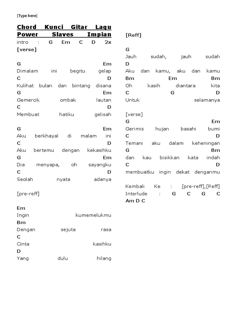 Setelah sebelumnya saya membuat artikel kumpulan kunci/chord gitar lagu barat termudah, kali ini saya akan membagikan chord lagu untuk belajar kunci gitar lengkap tolong kamu camgkan itu. Semoga terhibur dan bermanfaat 😊🙏. Chords doddy latuharhary — nomor lama. Chords ratings, diagrams and lyrics. Seputar lirik dan kunci gitar iwan fals terlengkap, chord lagu mudah dimainkan, ibu, bento, yang terlupakan, bongkar, kemesraan, ujung aspal (populer). Download as docx, pdf, txt or read online from scribd.