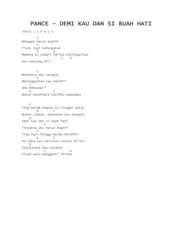 Chord Kunci Gitar Pance F Pondaag Demi. Chord gitar lagu / kunci gitar lagu pance f. A d bukan, bukan, bukan aku sengaja. Tiap malam engkau ku tinggal pergi.