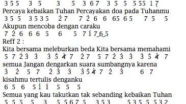 Not Angka Dan Lirik Lagu Melebur Beda. Lirik lagu dan juga not angka serta not balok lagu maju tak gentar. Baik yang sudah pemula sampai yang sudah mahir. Anda boleh menggunakan dan menyebarluaskan artikel ini dengan syarat tetap menyertakan url postingan ini.