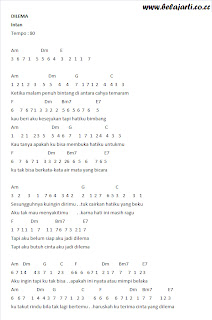 Not Angka Dan Lirik Lagu Ungu Dilema. Not angka lirik lagu dan video cherry belle dilema. Seberapa salahkah diriku hingga kau sakiti aku begitu menusukku inikah caramu membalas aku yang selalu ada saat kau terluka seberapa hinanya diriku hingga kau ludahi semua yang ku beri untukmu tak ada satu pun perasaan yang mampu membuatku begitu terluka. Yovie dimulai dengan y, klik y.