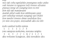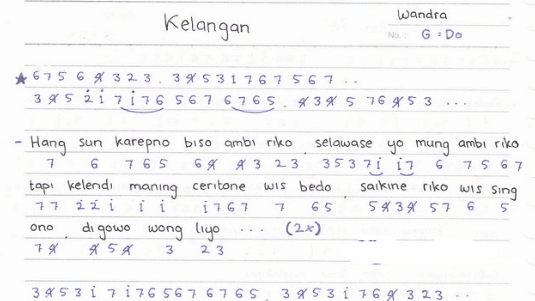 Sing ono maning hang isun welasi sing ono maning hang isun sayangi kembang hang ono ring tangan ilang kepetik wong liyan lagu kelangan 2 dinyanyikan oleh wandra dan kali ini saya berikan tutorial not angka buat teman teman yang ingin belajar lagu ini beserta. Yo mung ambi riko tapi kelendi maning. Hang sun karepno…biso ambi riko selawase….yo mung ambi riko. Tapi kelendi maning…ceritone wis bedo saikine riko wis sing ono di gowo wong liyo.