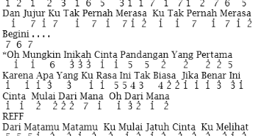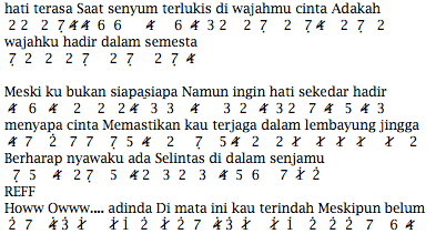Not Angka Lagu Dbagindas Empat Mata. Biarkanlah diri iniuntuk mencoba mendekatimumendekati indahnya dirimudirimu yang hadir di mimpiku *berikanlah aku waktudan keadaan yang engkau mampuempat mata yang ku mauuntuk katakan cinta padamu **hati ini takkan bisalebih lama tuk. 1.12 not angka indonesia pusaka. Bingung cari not angka lagu untuk lagu wajib nasional?.