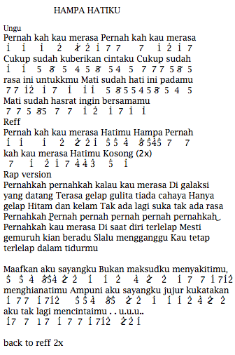Not Angka Lagu Dbagindas Maafkan. Download lagu & video mp4. Dbagindas maafkan aku mp3 / mp4. G d em maafkan ku menduakanmu c g d c d mencintai dia di belakang kamu kamu g d em salahkan semua tingkahku c g d c d yang keterlaluan menyakiti kamu kamu.