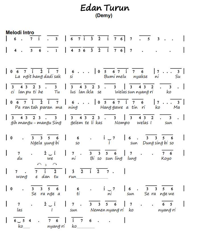 Not Angka Lagu Edan Turon Demy D d a c d a c.