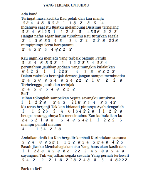 Not Angka Lagu Peterpan Ayah Feat Candil. C f g c dimana akan kucari. Sebab pada syairnya tersebut, dapat mengingat seseorang kepada sosok ayahnya sendiri. Not angka pianika lagu glenn fredly akhir cerita cinta.