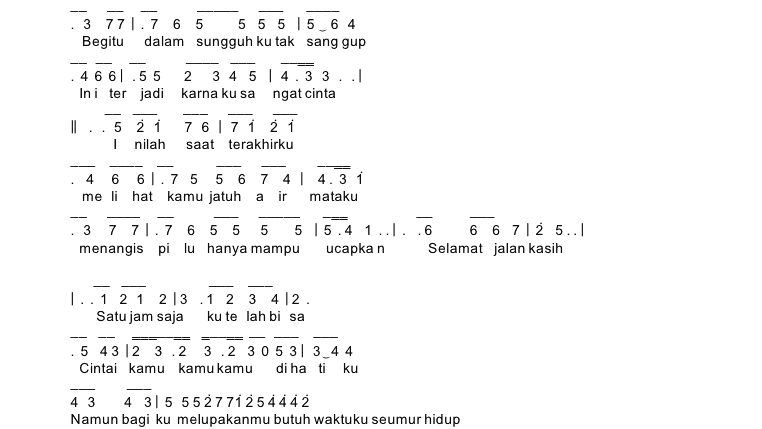 Meski begitu maha karya yang telah dihasilkan oleh sartono akan terus dikenang hingga kapan pun juga. Dan kubuatkan not angka lagunya bagaimana? Asal kalian bisa konsisten dan profesional *elah, resmi amat!* Sehingga, anda bisa menyimpan not angka lagu tersebut kedalam komputer atau laptop anda. Tapi maaf kalau komen di sini, slow respon. Memiliki soundtrack lagu yang unik dan menggelitik. Lagu ini ada di dalam album cinta yang kucari yang.