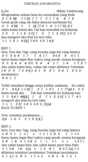 Tutorial notasi angka lagu bunda dilengkapi dengan doremi / solmisasi. Not angka dibawah ini bisa kamu mainkan di pianika kesukaan kamu. Untuk not angka lagu lainnya bisa di cek di : Belajar pianika mudah dan berlatih not pianika disini, lengkap dan loading cepat. Not lagu sendiri di internet cukup. Tutorial notasi angka lagu bunda dilengkapi dengan doremi / solmisasi. Not angka pianika lagu teman hidup tulus.